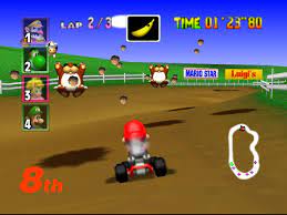 Mario Kart 64 es un videojuego de carreras desarrollado y distribuido por Nintendo para la consola Nintendo 64. Hay ocho personajes seleccionables en Mario Kart 64, con distintas características de conducción que se pueden dividir en tres grupos de peso: ligeros (Peach, Toad y Yoshi), medios (Mario y Luigi) y pesados (DK, Wario y Bowser.)